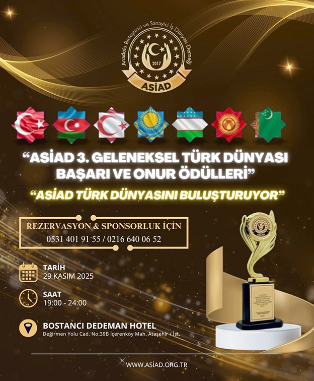 Anadolu Birleştirici ve Sanayici İşadamları Derneği ASİAD, başarılı sosyal projeleriyle gündem oluşturmaya devam ederken; ilgi uyandıracak dev organizasyonlarla da sektörlere artı değer katacak programlara imza atıyor. ASİAD’ın bu yıl 3.’sünü düzenleyeceği ödül gecesi Türk Dünyası Başarı ve Onur Ödülleri temasıyla gerçekleşecek.