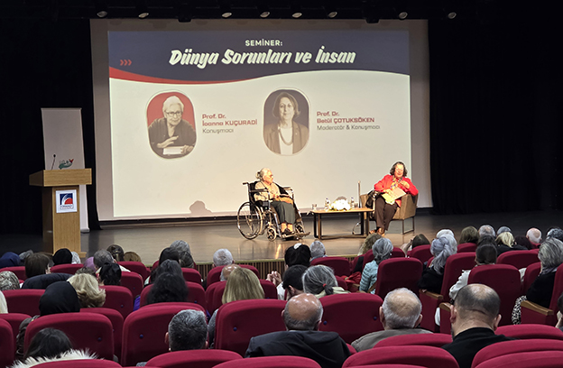Seminerin sunum kısmında ise felsefe alanının duayen isimlerinden Prof. Dr. İoanna Kuçuradi ve Prof. Dr. Betül Çotuksöken’in sunumuyla çağımız sorunlarının ele alındığı “Dünya Sorunları ve İnsan” konusu derinlemesine işlendi. İnsan hakları, etik değerler ve günümüz dünyasının karşı karşıya olduğu küresel meseleler; değerli hocalarımız Prof. Dr. İoanna Kuçuradi ve Prof. Dr. Betül Çotuksöken’in katkılarıyla çok yönlü bir bakış açısıyla izleyicilere aktarıldı.