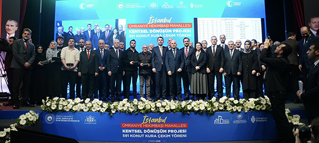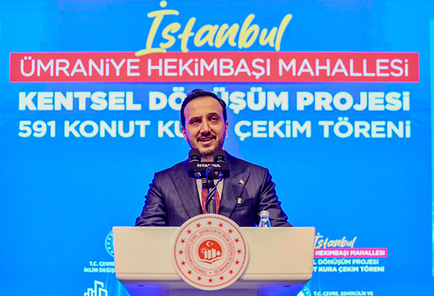 Çevre, Şehircilik ve İklim Değişikliği Bakanlığı ile Ümraniye Belediyesi işbirliğinde yürütülen kentsel dönüşüm projesi kapsamında Hekimbaşı Mahallesi’nde yapımı tamamlanan 18 bloktan oluşan, 591’i konut ve 28’i ticari olmak üzere 619 bağımsız birim için kura çekim töreni düzenlendi. Şehit Kaymakam Muhammed Fatih Safitürk Kültür Merkezi’nde gerçekleştirilen törene Çevre, Şehircilik ve İklim Değişikliği Bakanı Murat Kurum’un yanı sıra İstanbul Valisi Davut Gül, AK Parti İstanbul İl Başkanı Abdullah Özdemir, Ümraniye Belediye Başkanı İsmet Yıldırım ve hak sahipleri ile vatandaşlar katıldı.