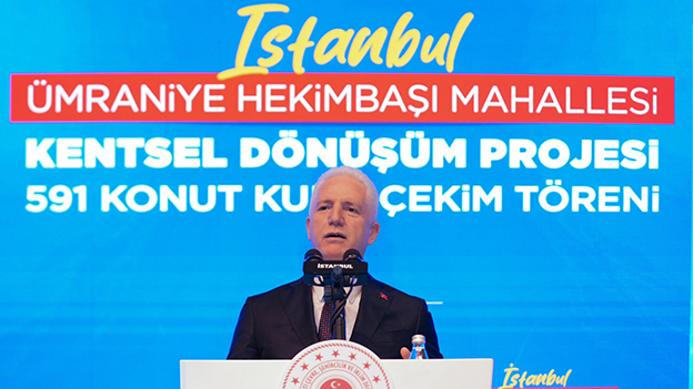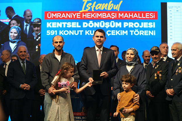 Ümraniye Hekimbaşı Mahallesi Kentsel Dönüşüm Projesi kapsamında yapımı tamamlanan konutların hak sahipleri, kurayla belirlendi. Kura çekim töreninde konuşan Çevre, Şehircilik ve İklim Değişikliği Bakanı Murat Kurum, “Kentsel dönüşüm tam bağımsız Türkiye’nin teminatıdır. Bu yüzden kimseye aldırmadan İstanbul’u deprem karşısında bir kale gibi sağlam yapacağız” dedi. Ümraniye Belediye Başkanı İsmet Yıldırım da, “2 bin 500 vatandaşımız bu konutlarında huzur ve güvende oturacaklar” dedi.