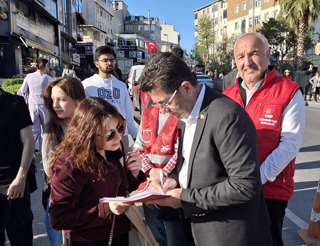 İstanbul Büyükşehir Belediye Başkanı ve Cumhuriyet Halk Partisi’nin Cumhurbaşkanı Adayı Ekrem İmamoğlu’na özgürlük ve erken seçim için imza kampanyası her geçen gün büyüyerek devam ediyor. Çekmeköy’de belediye başkanından meclis üyelerine, ilçe yönetiminden kadın ve gençlik kollarına tüm CHP örgütü olarak topyekun bir seferberlik halinde olduklarını ifade eden İlçe Başkanı Haydar Arslan, herkesin adayını yanında sandığı önünde istediğini kaydetti. Sabit stantların dışında partililerle birlikte esnaf ziyaretleri de gerçekleştiren Başkan Arslan, imza kampanyasının 19 Mayıs’a kadar devam edeceğini belirterek; “Mücadelemiz hak, hukuk, adalet ve demokrasi mücadelesidir” dedi.