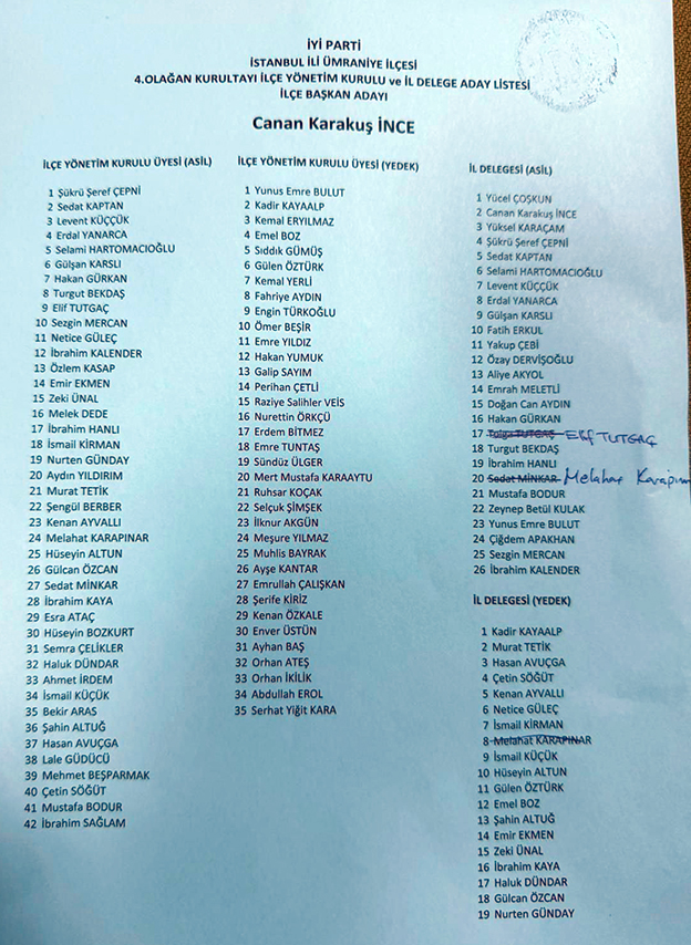 Kongre daha sonra listelerin okunması ve aday konuşmaları ile devam etti. Yapılan seçim sonucunda ise adaylardan Gülsüm Erol’un almış olduğu 51 oya karşılık 86 oy alan Canan Karakuş İnce, İYİ Parti’nin yeni Ümraniye ilçe başkanı seçildi.