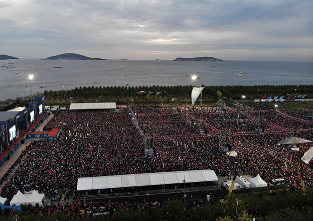 Ülkeyi huzura kavuşturmamız lazım. Çok kamplaştırdılar. Komşumuzun kimliğini sorgular hale getirdiler. İnsanların inançlarını sorgular hale getirdiler. Türkiye’yi buradan çekip çıkaracağız. Bunun için en büyük güç sizsiniz. Sizlerle beraber yola çıkacağız. Gençler, burada mısınız? Yaklaşık 800 bini aşkın genç İstanbul’da gidip sandıkta ilk kez oy kullanacak. Ve sizler otoriter bir yönetimi demokratik yollarla değiştireceksiniz. Sadece bizim siyasi tarihimiz değil, dünya siyasi tarihine de önemli bir armağan bırakacaksınız. Bu onur size yeter.