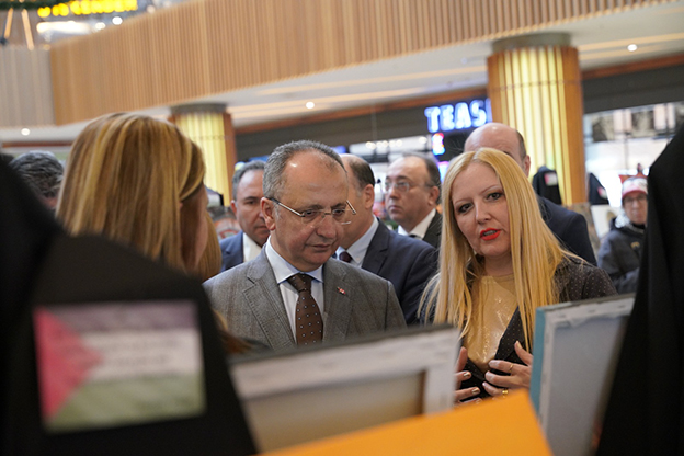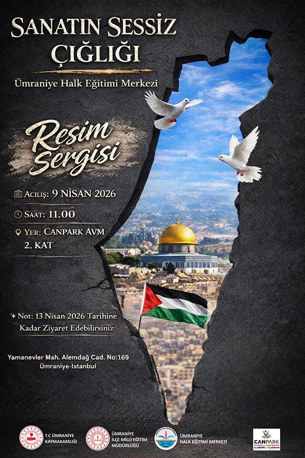 Ümraniye Halk Eğitim Merkezi Görsel Sanatlar Öğretmeni Nermin Özcan Songur önderliğinde “Sanatın Sessiz Çığlığı “adlı Filistin konulu resim sergisi Ümraniye Kaymakamı Yüksel Çelik, İlçe Milli Eğitim Müdür Vekili Dündar Polatcan, Belediye Başkan Yardımcısı Ayşe Yanık, AVM yönetimi, birim müdürleri ve çok sayıda sanatseverin katılımıyla ziyarete açıldı. Bütün dünya milletlerinin gözü önünde yaşanan Filistin’deki insanlık katliamının anlatılmaya çalışıldığı sergide birbirinden derin izler taşıyan çizimler sergileniyor.