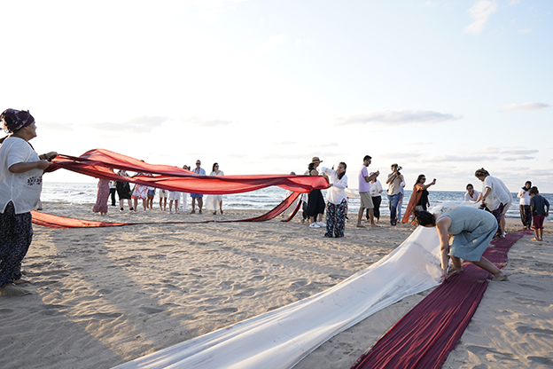 Enstitü İstanbul İSMEK’in festival etkinlikleri kapsamında Şile’nin tarihi Kumbaba Oteli, Şile bezi dokuma atölyesi ve yıkama ritüeline ev sahipliği yaptı. Peki Şile bezi yıkama ritüeli nasıl gerçekleştiriliyor? Öncelikle ateş yakıp kazanlarda un çorbası, bilinen adıyla haşıllama yapılıyor. İpin daha sert ve sağlam olmasını sağlamak amacıyla ip, unla kaynatılıyor, daha sonra kurutuluyor. Haşıllama işleminin ardından dokuma gerçekleştiriliyor. Dokumayla ortaya çıkan kumaşlar denizde yıkanıyor, ardından da kumlara serilerek kurutuluyor. Kum üzerinde kurutulan kumaşlar kasnaklara geçirilerek üzerine desen işleniyor.