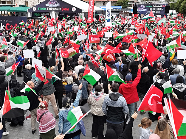 Yürüyüş ardından düzenlenen program, Kur’an-ı Kerim tilavetiyle açıldı. Hafız Yusuf Bereket’in kıraatinin ardından, Filistinli kanaat önderi Muin Naim ile protokol üyeleri katılımcılara hitap etti. Konuşmalarda Filistin halkına destek vurgulanırken birlik ve dayanışma mesajları öne çıktı. Program, sanatçı Mehmet Ali Aslan’ın seslendirdiği ezgiler ve ardından yapılan dualarla program sona erdi.