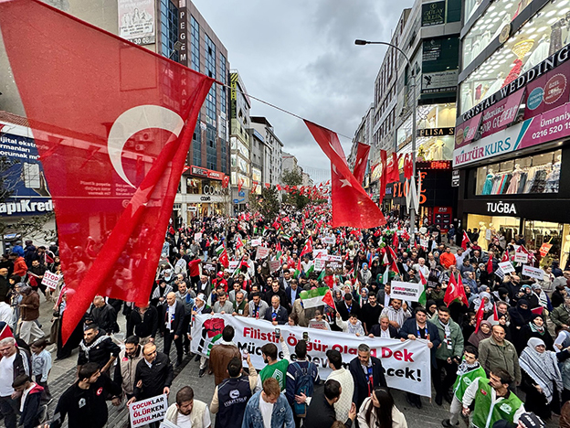 Ümraniye Belediyesi öncülüğünde gerçekleştirilen ve on binlerce vatandaşın katılım gösterdiği Gazze Yürüyüşü, Haldun Alagaş Spor Kompleksi önünden başlayarak 15 Temmuz Şehitler Meydanı’na kadar sürdü. Saat 16.30’da başlayan yürüyüşte, Türk ve Filistin bayraklarını taşıyan on binlerce kişi, hep bir ağızdan “Nehirden denize özgür Filistin”, “Dünya 5’ten büyüktür’’ “Gazze yalnız değildir” ve “Zulme sessiz kalma” sloganları eşliğinde yürüdü.