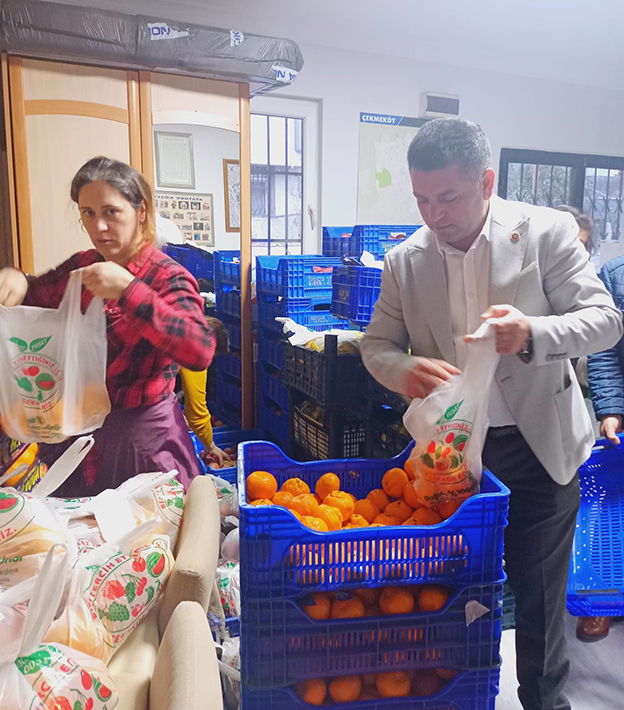 Hayırseverlerin katkılarıyla yaptığı vatandaş yardım ve desteklerini daha da artıran Çekmeköy Sultançiftliği Mahalle Muhtarı Engin Çelik, yüzlerce aileye meyve paketleri hazırlatıyor. Yine hayırseverlerin katkılarıyla temin edilen elmasından portakalına, armutundan mandalina ve muzuna onlarca kasa çeşit, çeşit meyve Muhtar Çelik’in gönül dostları tarafından halka dağıtılmak üzere tek tek poşetleniyor.